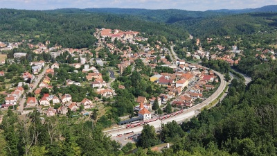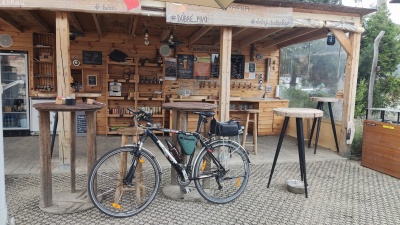 ( krásný výhled na údolí Svitavy ) a kousek za Adamovem a Novým hradem jsem opustil železnici a začal stoupat do kopců - Musel jsem se dostat k další Brněnské řece Svratce. Ve Vranově jsem si zajel k místnímu Samovýčepu. Můžete si zde sami načepovat z několika druhů piv, dokonce tu mají i ledničku s Petkama ( zaplatil jsem QR kodem - opravdu samoobsluha bez dozoru !! )
