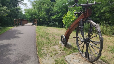 ( snídani ) a pak vyrazil na kole kolem řeky Svitavy, projel Brnem ( cyklostezka vede kolem řeky industriální oblastí a vyhýbá se všem cestám. Ve dvou místech je třeba však silnici přejet - což není v Brněnském provozu vůbec jednoduché ) a dojel k železnici, která se spolu s cyklostezkou vlní údolím Svitavy. Železnice si krátí cestu v 10 tunelech, zatímco cesta/stezka se klikatí spolu s řekou. V Bílovcích jsem si odskočil na místní rozhlednu u Lidušky